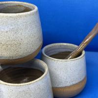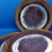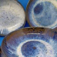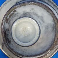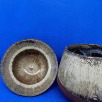 Ce que j'aime avec le grés, outre son toucher presque sensuel lorsqu'on le travaille, ce sont les effets de couleurs dans ses émaux, ses coulures, nucléations et autres rendus en réaction avec le feu .